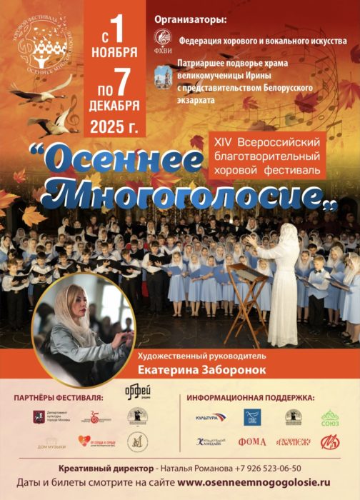С 1 ноября по 12 декабря 2025 года в Москве проходит XIV Всероссийский благотворительный хоровой фестиваль «Осеннее многоголосие».